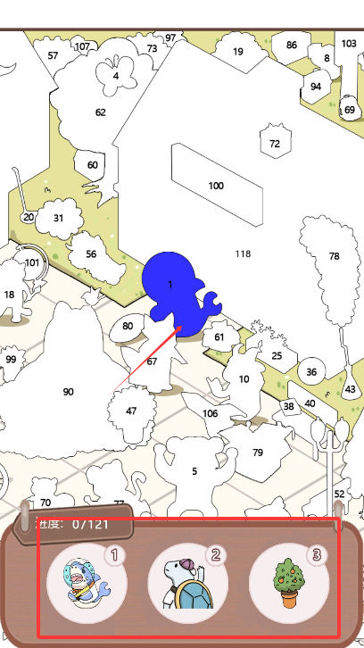 1、進(jìn)入新場景先觀察整體,根據(jù)數(shù)字提示規(guī)劃拼貼方案,標(biāo)記關(guān)鍵區(qū)域和特殊點(diǎn)位。