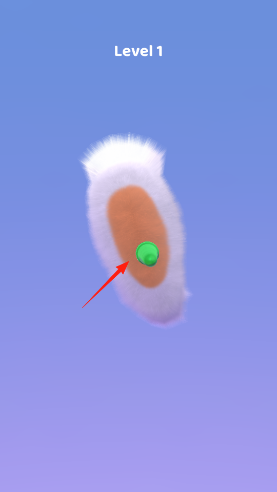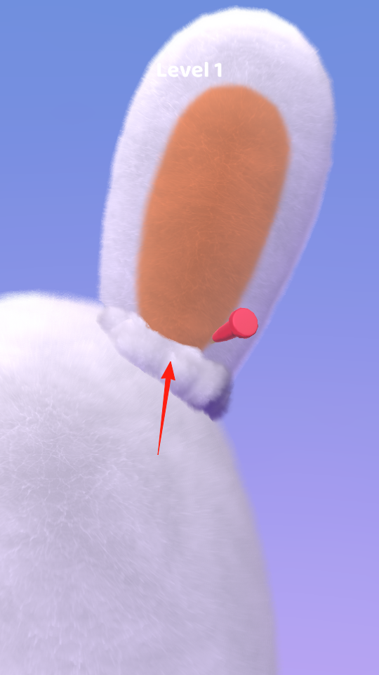 3、用紅色工具(箭頭指向)對(duì)毛絨邊緣、細(xì)節(jié)修補(bǔ),塑造出類似兔耳形狀,完成Level1任務(wù)。