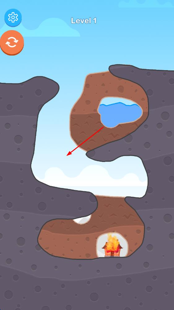 2、游戲進(jìn)行中,遇到復(fù)雜火情時(shí),需結(jié)合挖洞策略與工具使用,調(diào)整洞的位置與走向,讓水流繞過(guò)障礙精準(zhǔn)撲向所有火焰。