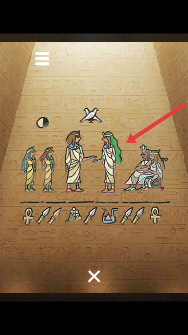 2、需要觀察金字塔壁畫,聚焦箭頭指向的人物,分析其與周圍圖案(如白鴿、符號)的關(guān)聯(lián),提取解謎線索。