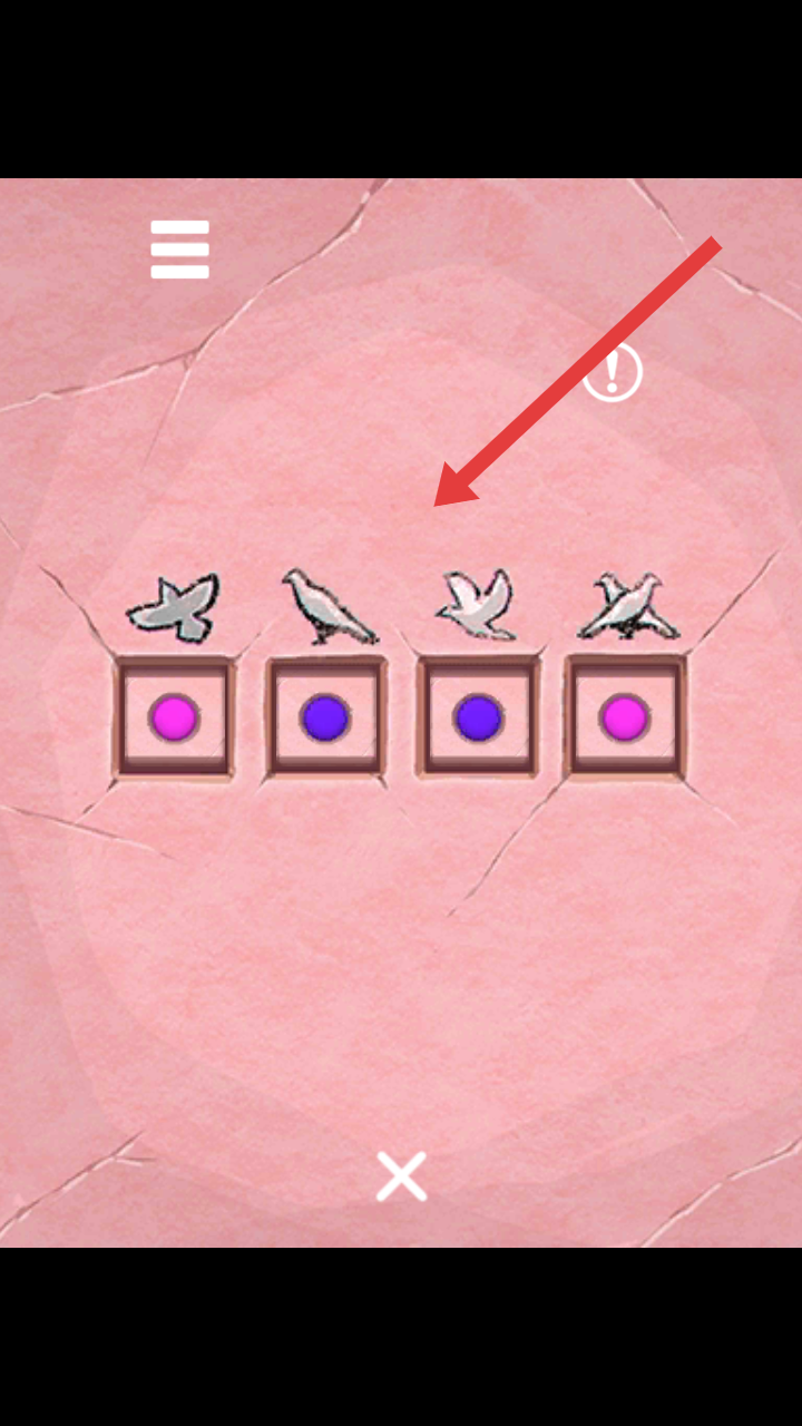 3、研究粉色背景上的鳥類與圓點圖案,根據(jù)鳥的形態(tài)、圓點顏色(粉、紫交替)規(guī)律,破解機關(guān)排列謎題。