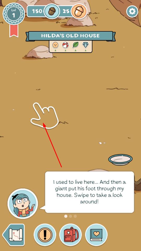 2、在“Hilda's Old House”場(chǎng)景,按提示滑動(dòng)、點(diǎn)擊互動(dòng),挖掘場(chǎng)景隱藏內(nèi)容與故事。