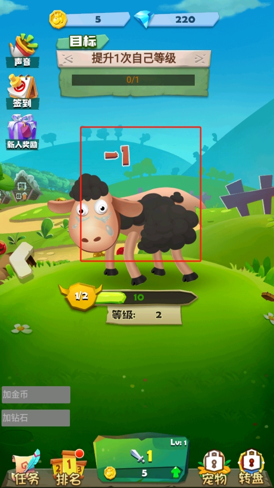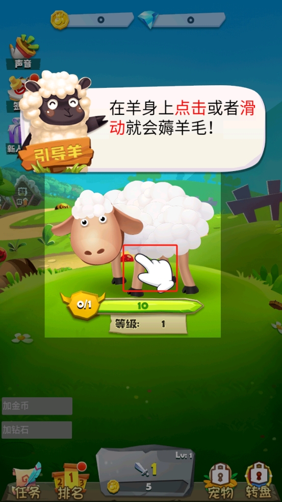 1、開局跟隨引導(dǎo),點擊或滑動羊身薅羊毛,按提示操作完成首次薅取,注意觀察進度(0/1),薅完可升級羊或解鎖新內(nèi)容。