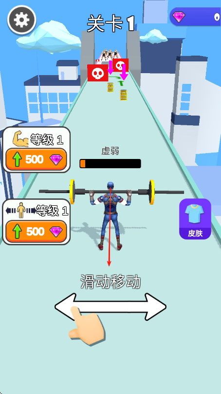 1、基礎(chǔ)移動(dòng)控制:通過(guò)簡(jiǎn)單的手勢(shì)操作控制舉重選手的移動(dòng)方向和速度,在賽道上穩(wěn)步前行,同時(shí)要時(shí)刻留意前方出現(xiàn)的障礙物,提前做好應(yīng)對(duì)準(zhǔn)備。