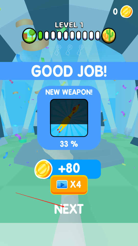 2、將所有的皮筋人擊飛后,即可到達終點,每通關一個關卡,獎勵則會增長一點進度,且也會獲得金幣的獎勵。