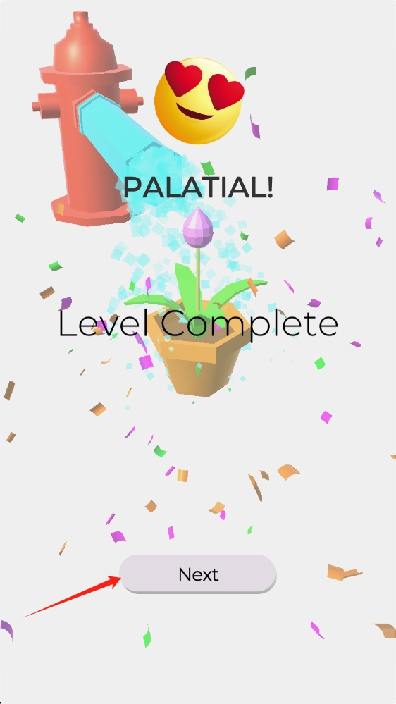 2、第二張:Level1 完成,顯示 PALATIAL! Level Complete華麗!關(guān)卡完成 ,點擊下一關(guān)。