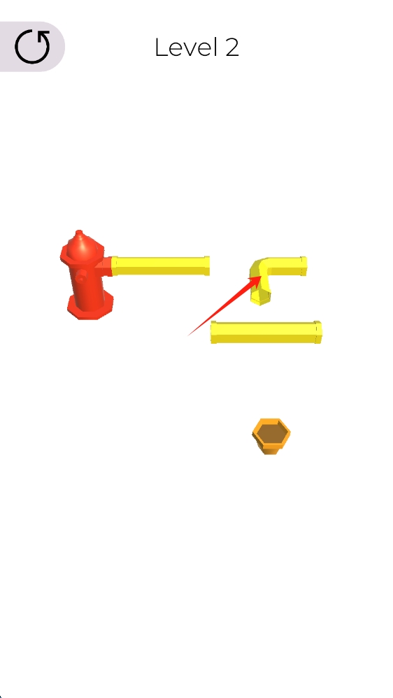 3、第三張:Level2第 2 關(guān) ,需拼接黃色水管含彎頭、直管 ,延續(xù)水管連接玩法,點擊拼接管道。