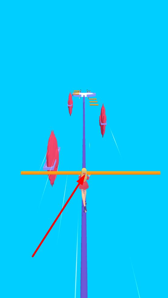 1、玩家選定角色,在初始鋼絲賽道,點擊屏幕控制角色移動方向,躲避兩側(cè)及路徑上的基礎(chǔ)障礙,保證角色收集到足夠多的木棍。