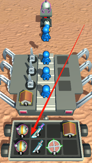 1、合并機器零件:收集散落的機器零件,按照規(guī)則將相同或兼容的零件合并,制作出基礎(chǔ)戰(zhàn)爭機器,了解不同零件組合帶來的性能差異。
