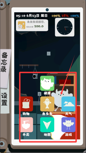 3、當(dāng)健康狀態(tài)惡化時(shí),玩家可通過(guò)外賣(mài)APP訂購(gòu)食物和飲料快速恢復(fù)體力,維持正常活動(dòng)能力。