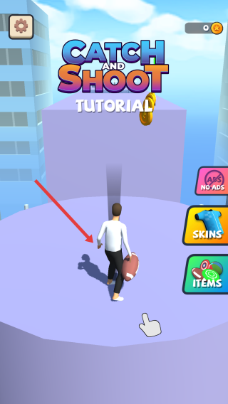 1、在Catch and Shoot教程關(guān),按RELEASE TO THROW!提示,把握時(shí)機(jī)釋放投擲橄欖球,收集空中金幣。