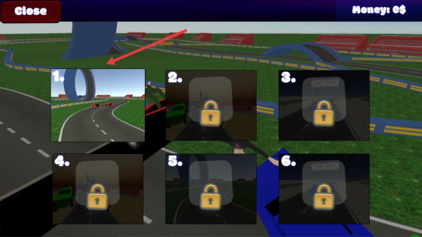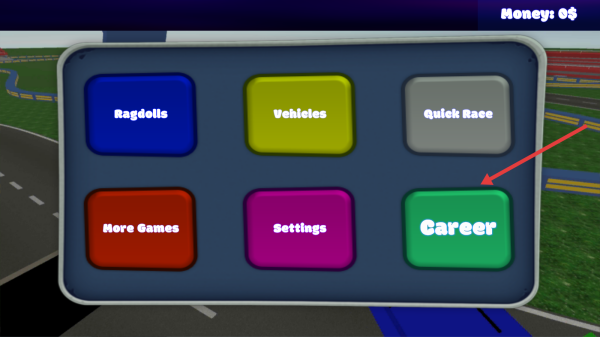 1、主界面點(diǎn)擊綠色Career,進(jìn)入生涯模式關(guān)卡選擇,解鎖第1關(guān)彎道賽道,開啟賽車挑戰(zhàn)。