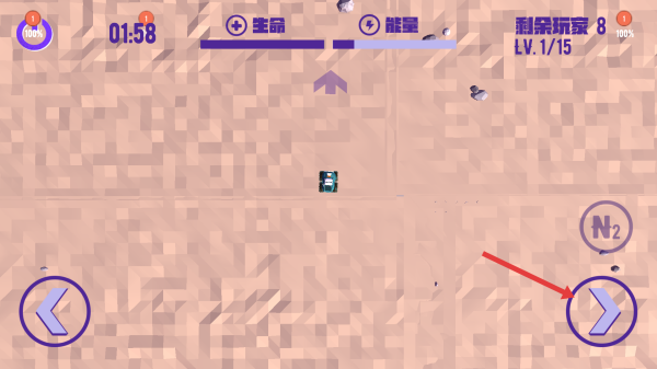 2、在沙漠賽道,按左右按鍵控方向,點(diǎn)擊氮?dú)釴?加速,躲避障礙、與其他玩家競(jìng)速。