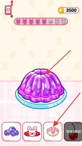 3、在果凍制作界面,根據等級解鎖情況,選擇如藍莓、兔子裝飾等裝飾元素,對紫色果凍進行裝飾,提升果凍吸引力,推進游戲任務。