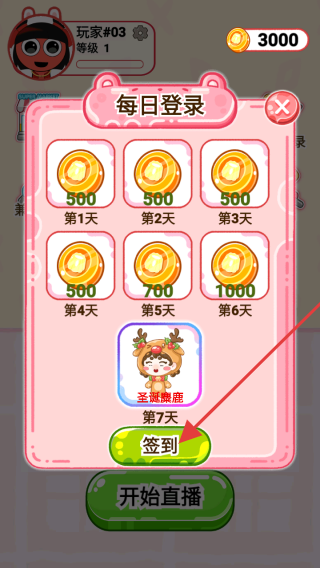1、在游戲界面打開每日登錄面板,點擊簽到按鈕,可按天數依次領取金幣等獎勵,連續(xù)簽到7天能獲圣誕麋鹿等特殊獎勵,積累游戲資源。
