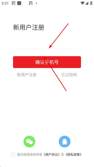 3、進(jìn)入新用戶注冊(cè)頁,點(diǎn)擊確認(rèn)手機(jī)號(hào)按鈕。