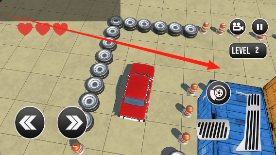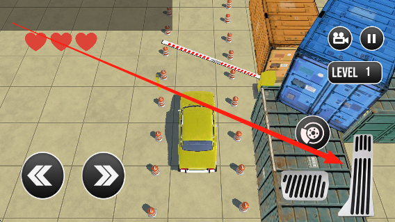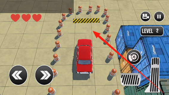 2、關(guān)卡中出現(xiàn)簡單障礙,需操控汽車避開障礙完成任務(wù),逐步提升駕駛精準(zhǔn)度向停車位靠近。