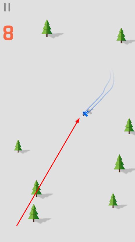 2、在雪地森林賽道,點按屏幕控制滑翔機飛行,躲避樹木障礙,保持飛行軌跡。