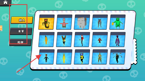 2、進(jìn)入角色選擇界面依據(jù)游戲需求,從敵人、友軍、陷阱分類中挑選合適角色,組建戰(zhàn)斗陣容。