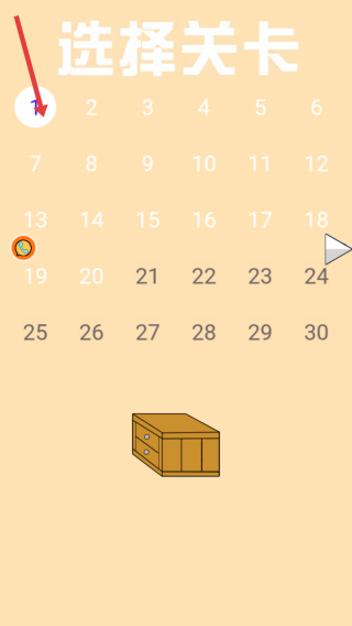 1、開啟游戲后,點擊初始界面點擊下方的開始游戲的按鈕,進入關(guān)卡選擇頁,選第1關(guān),開啟解謎逃亡挑戰(zhàn)。