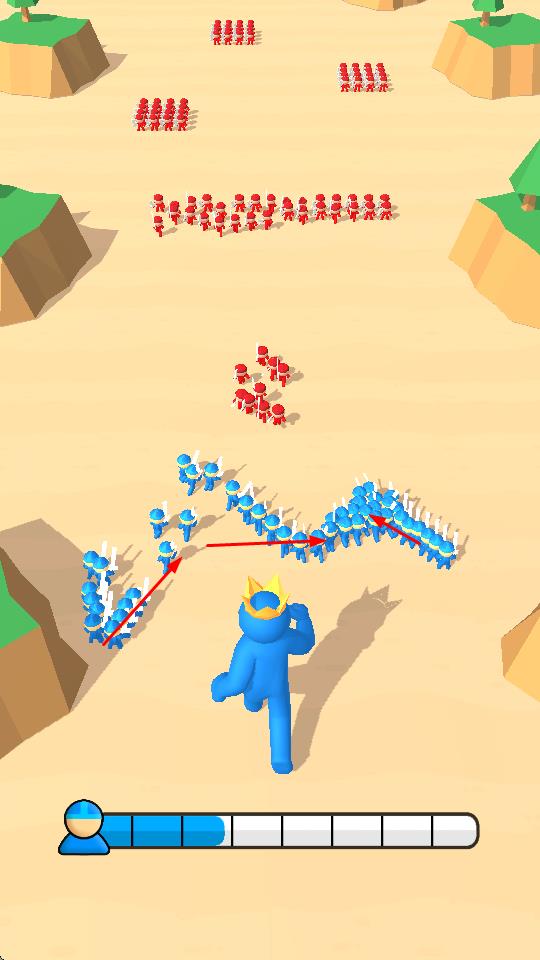 2、在移動過程中,遇到紅色小人隊(duì)伍時,指揮己方藍(lán)色小人隊(duì)伍與其戰(zhàn)斗,通過數(shù)量優(yōu)勢擊敗紅色小人,擴(kuò)大己方勢力范圍。