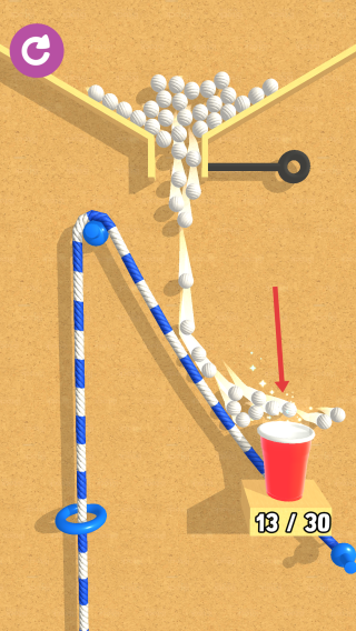 2、機(jī)關(guān)陷阱應(yīng)對:玩家要在各種機(jī)關(guān)陷阱中,用繩子順利引導(dǎo)小球避開障礙,精準(zhǔn)進(jìn)入紙杯,每一步操作都需謹(jǐn)慎考量,考驗(yàn)應(yīng)變能力。