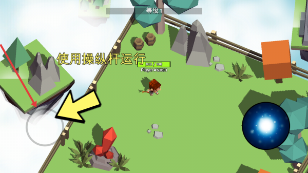 1、進(jìn)入等級(jí)1場景,按提示使用左側(cè)操縱桿運(yùn)行,操控角色在浮空島區(qū)域移動(dòng)探索。