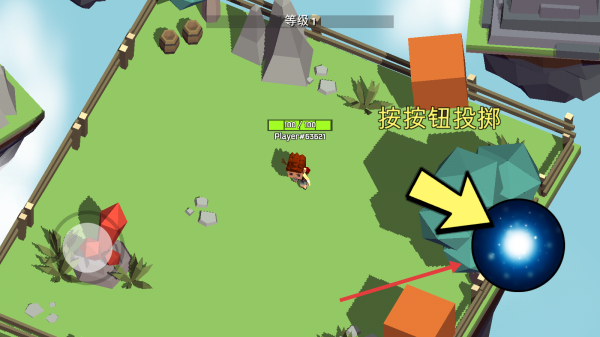 2、遇到藍(lán)色光球,依據(jù)提示按按鈕投擲,利用技能道具,助力冒險(xiǎn)戰(zhàn)斗與場景交互。