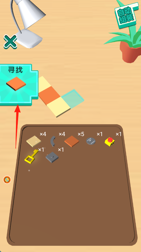 3、持續(xù)收集所有尋找欄零件,湊齊后,可點擊自動組裝,合成完整物品,推進關卡,解鎖新組裝任務。