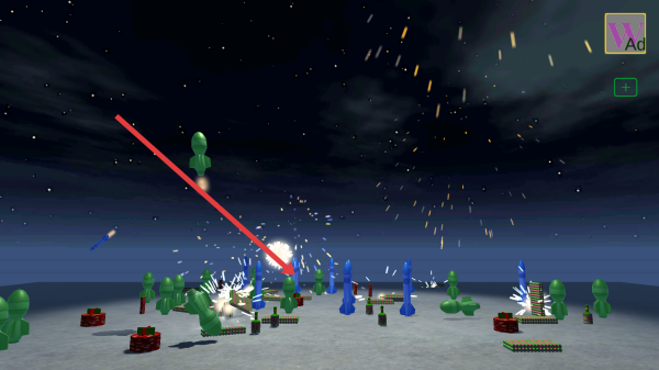 2、嘗試多類型煙花組合點(diǎn)擊,規(guī)劃燃放順序,讓綠色火箭、禮盒等煙花交錯(cuò)升空,巧妙利用不同煙花爆炸炸出美感。