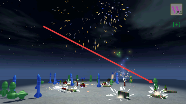 1、在開始的場(chǎng)景里,很多各種各樣的煙花從天而降,主動(dòng)點(diǎn)擊綠色火箭、禮盒樣式等各類煙花,快速觸發(fā)燃放流程。