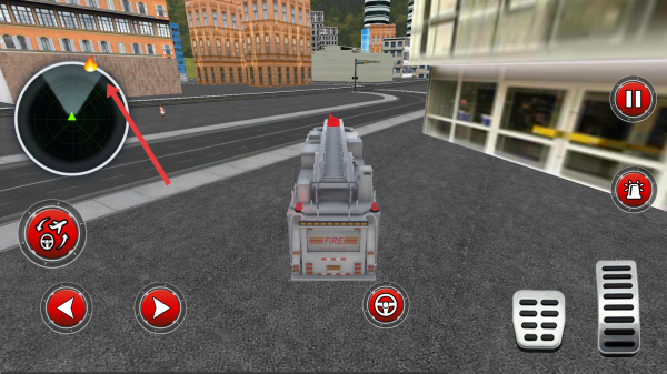 2、根據(jù)雷達左上角提示的火災(zāi)位置,駕駛消防車前往。