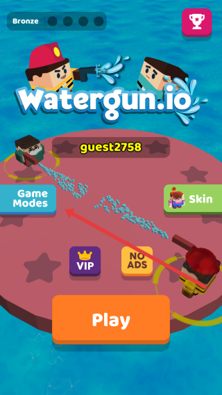 1、進(jìn)入到Watergun.io主界面,可以點擊Game-Modes按鈕,進(jìn)入游戲模式選擇頁面。