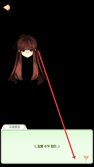 3、黑暗劇情分支:黑色背景現(xiàn)韓語對話…??????…按劇情選互動按鈕,如返回箭頭。