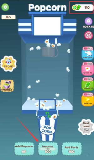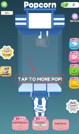 1、點擊紅框TAP TO MORE POP區(qū)域,快速制作更多爆米花。