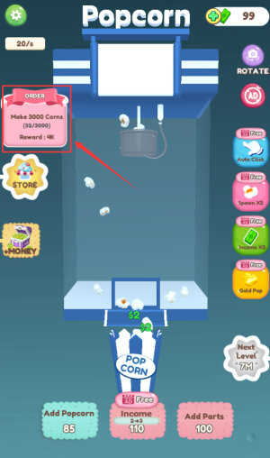 4、完成紅框3000爆米花訂單,領(lǐng)取4K金幣任務(wù)獎勵。
