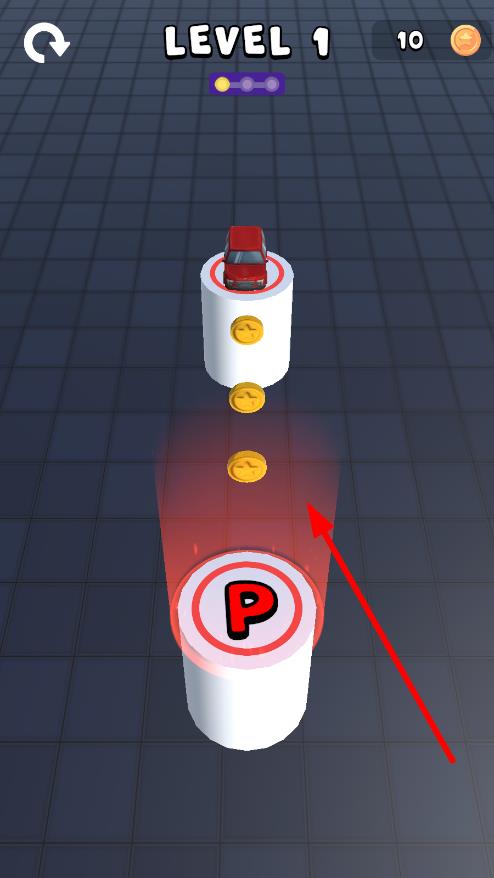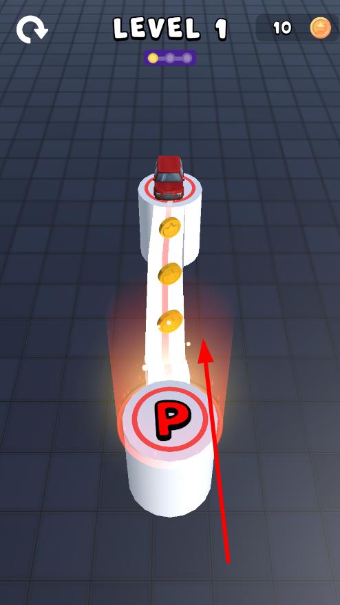 1、進(jìn)入LEVEL1,觀察汽車、金幣、停車位位置,在屏幕上滑動(dòng)繪制路徑,連接起點(diǎn)與停車位,準(zhǔn)備引導(dǎo)汽車行動(dòng)。