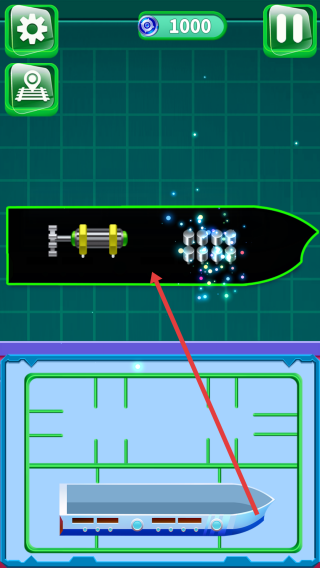 2、船舶組裝在收集到相應的部件,如引擎、金屬模塊后,按照游戲的指引,將這些部件拖動到船體框架內(nèi)合適的位置。