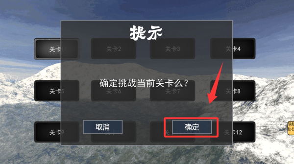 3、確定挑戰(zhàn)當(dāng)前關(guān)卡么?點(diǎn)擊紅色箭頭的確認(rèn)。