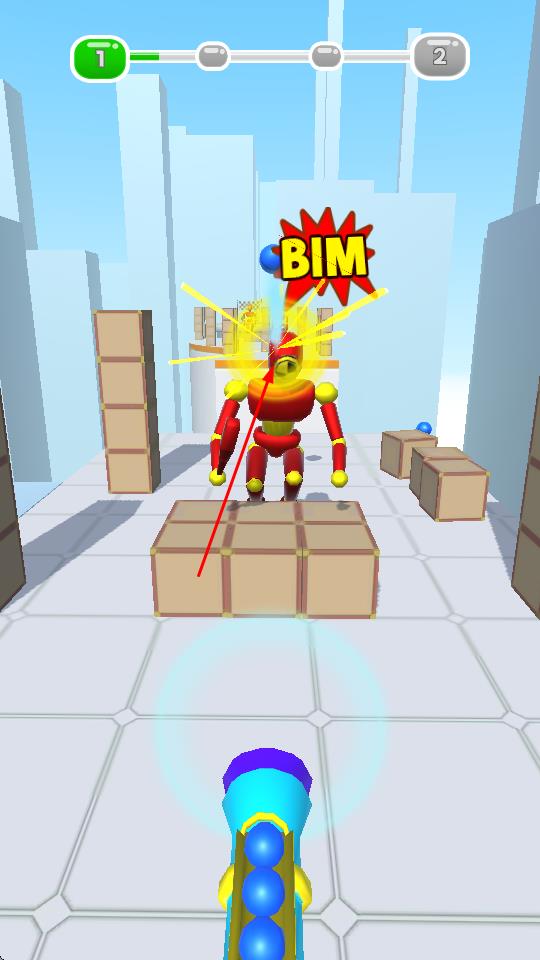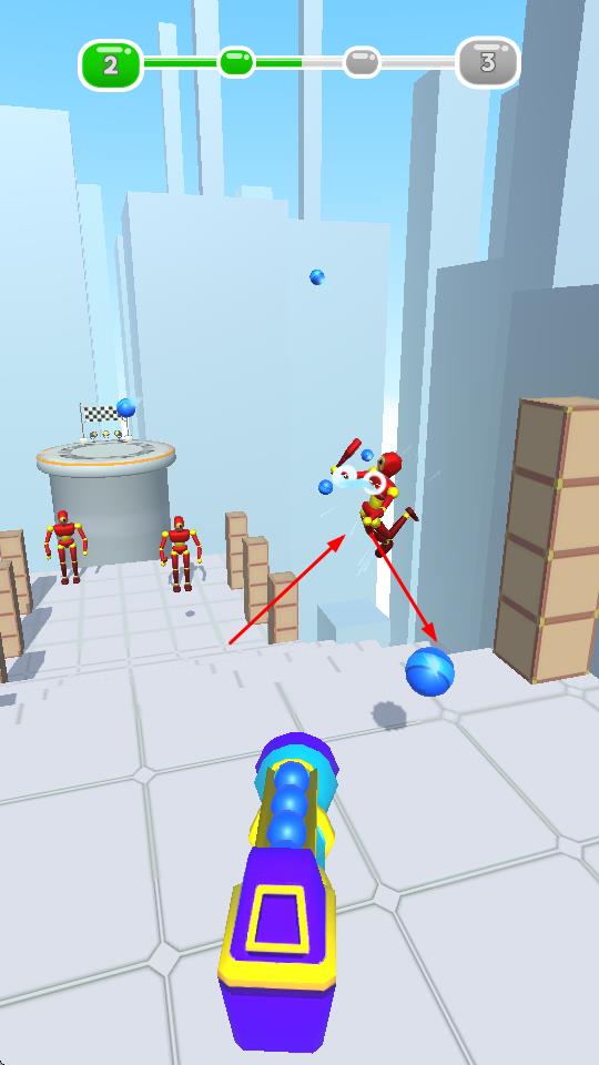 2、在射擊過程中,留意周圍出現(xiàn)的其他紅色機(jī)器人,靈活調(diào)整射擊角度和目標(biāo),逐個擊敗。