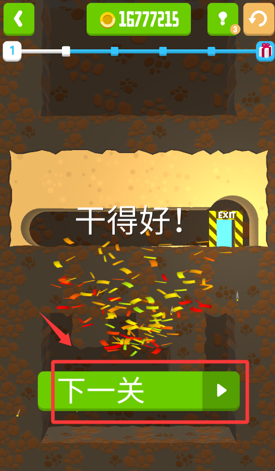 3、點擊紅色框框的下一關就可以玩了。
