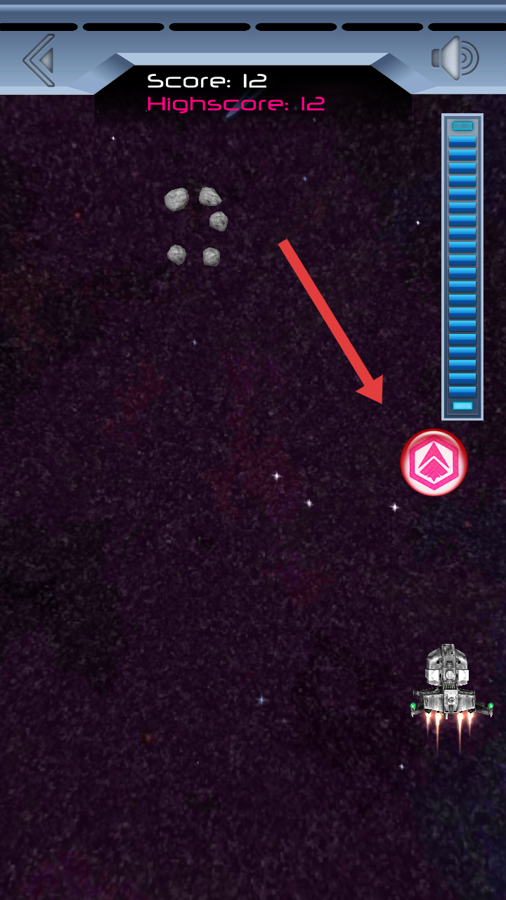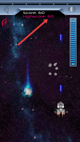 3、在收集藍(lán)色的光柱增強(qiáng)自身的能力,攻擊帶藍(lán)光的特殊隕石,沖擊Highscore的高分記錄。