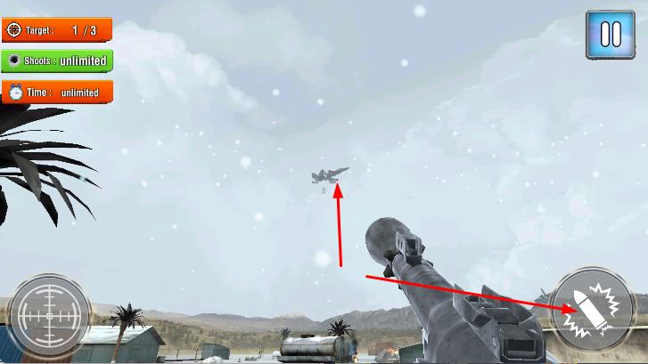 1、在關(guān)卡選擇界面,操控高射炮,通過左側(cè)的瞄準搖桿調(diào)整射擊方向,對準天空中的敵方飛機。