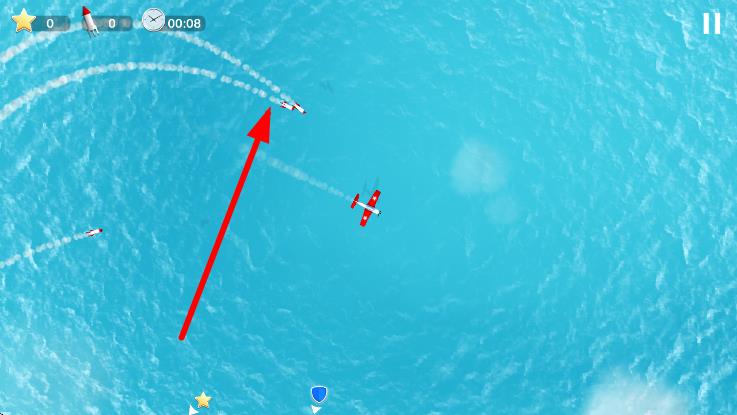 3、遇到敵方飛機(jī),調(diào)整飛機(jī)方向,瞄準(zhǔn)目標(biāo),發(fā)射導(dǎo)彈或利用飛行技巧,消滅敵人。