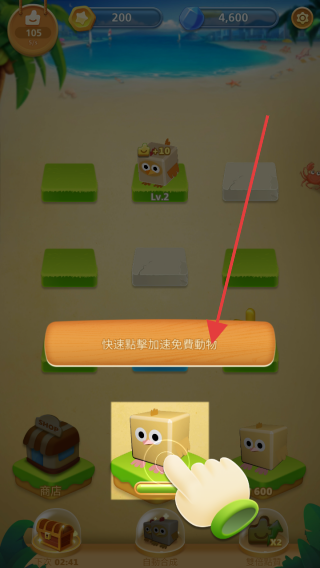 3、在游戲界面中,點(diǎn)擊下方的方塊,按照提示進(jìn)行操作,快速點(diǎn)擊加速完成隨機(jī)事件。