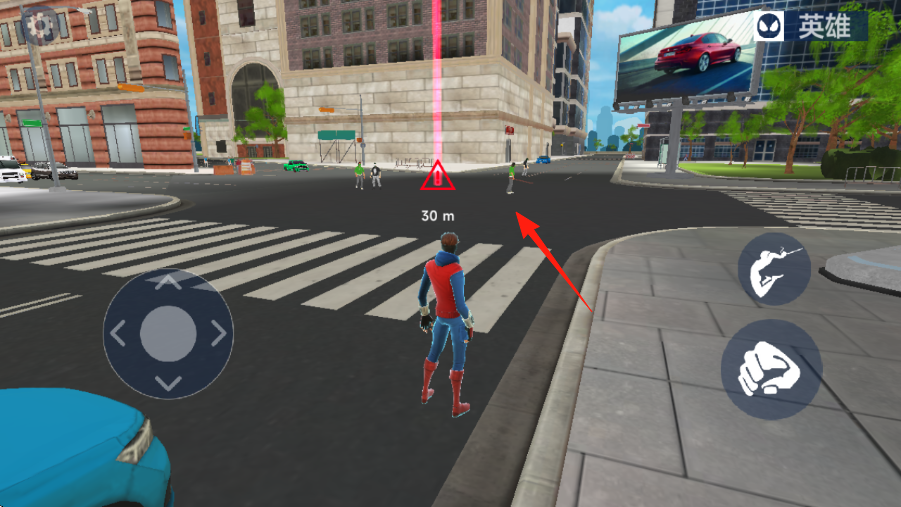 2、接受任務(wù)后,操控英雄,按箭頭指引,前往目標(biāo)地點(diǎn)紅色三角標(biāo)識(shí)處,接近任務(wù)目標(biāo)。