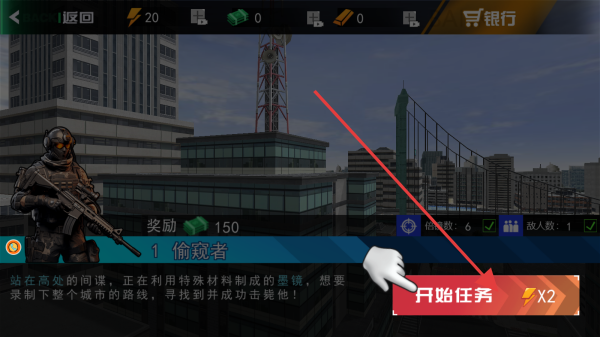 2、在游戲的任務(wù)界面,點(diǎn)擊開(kāi)始任務(wù)按鈕,接受任務(wù)并進(jìn)入任務(wù)場(chǎng)景,準(zhǔn)備完成任務(wù)。