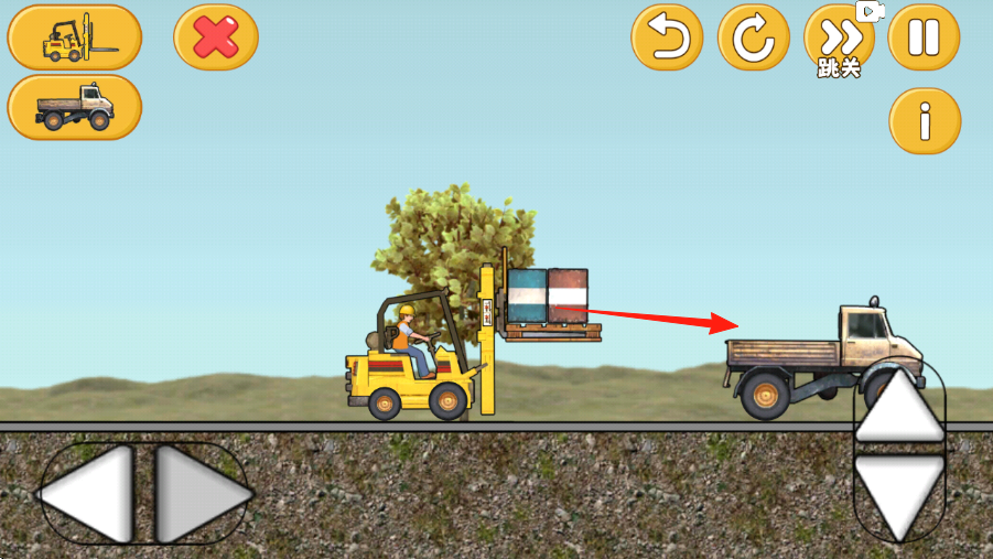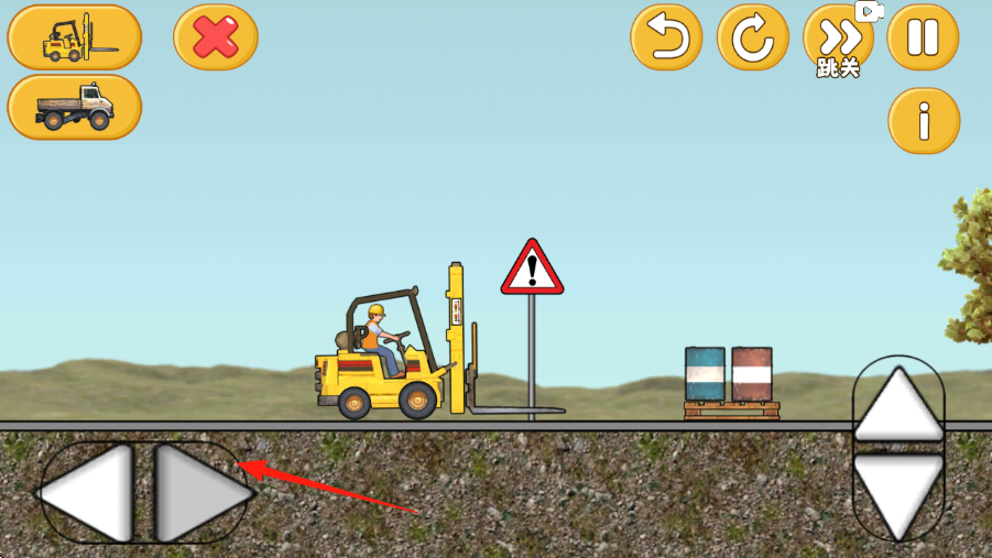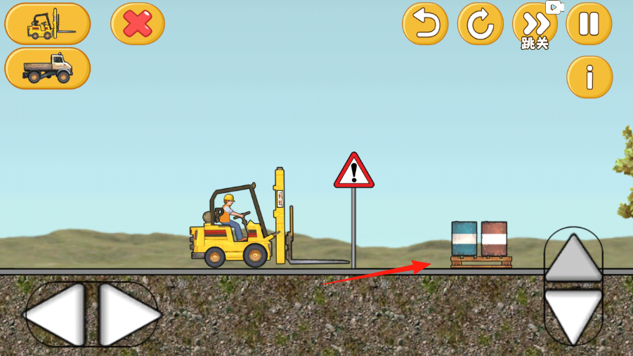 1、用左下角左右箭頭箭頭指的方向鍵,操控黃色叉車移動(dòng),靠近貨物托盤。