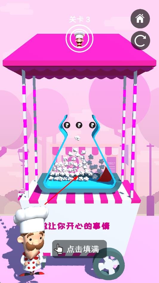 2、快速收集方法:爆米花爆開后及時滑動屏幕收集散落的彩色顆粒,集中在容器中心區(qū)域可提高收集效率,積累更多分數(shù)。