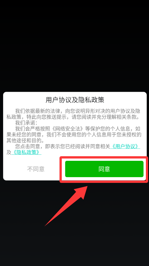 1、點(diǎn)擊用戶協(xié)議及隱私政策的同意。
